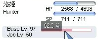 WPを抜けてすぐ、そのまま動かないでいると10秒間無敵というのはGVの常識なのですけど、その集団に向かって手動で鷹を飛ばしてると、結構手ごたえがあるんですよね。無詠唱を狙ったWIZさんとか、タイミングを見計らって歩こうとした人とかだったりするんでしょうけど。