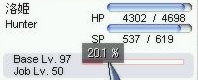 いつもだったらこれくらいになってるな~とある程度感覚で予想して、狩りの途中で、ふと経験値のたまり具合をみてみたりするのですが、予想よりも0.2%くらい違ってて、上がりにくいな~とか感じるわけで……。