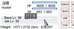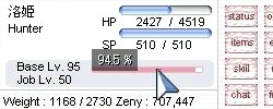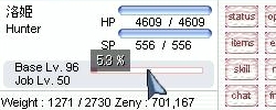 で、……え~と、まあ大体HSP1本(30分)で0.7%と考えてみると、ノルマの5%に行くには3時間半(0.7×7=4.9)くらい。今までは2時間半~3時間弱で5%だったわけだから、まあHSP1本分余計に狩りをすればいいのかな?