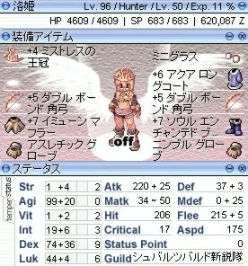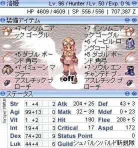 まあ、今更DEXを上げてもそれほど攻撃力は変わらないかな~と思いまして、鷹ダメージUPとスキル連打の足しにという感じ?