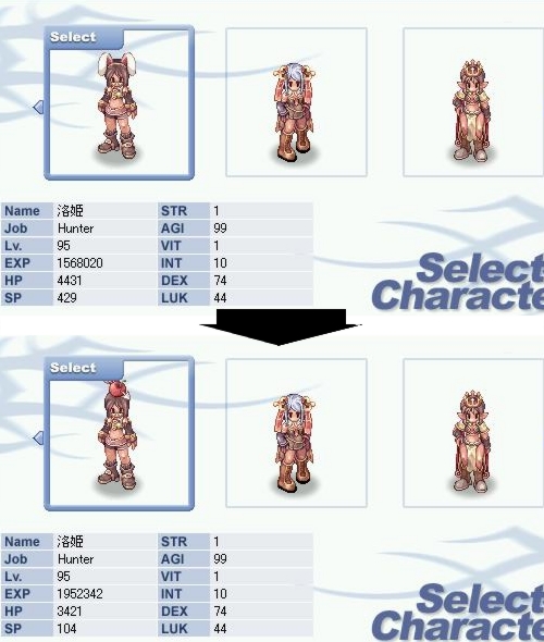 というか、Lukを上げるくらいなら常時矢リンゴでも装備してDEX上げとくのがホントなら合理的。まず、上がるポイントだけ取って見ても『うさ耳:Luk+2』に対し『矢リンゴ:Dex+3』と数字が1大きい。それから、さっきも言った通りDexは10の倍数に持って行けばAtkにちょっとボーナスが加算される上、そこまで行かないにしても純粋に攻撃力が上がる、ちょっとだけ攻撃スピードが上がる、命中率も上がる、鷹のダメージだって上昇する……などなど直接的にダメージが上がり、いろいろ強くなる要素があります。