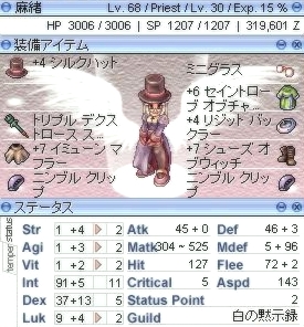 以前消した透香(プリ)とステータスのタイプ自体は同じにしようと思っているので、SWの詠唱時間も特に問題にはならないと思いますし……使いすぎにさえ注意すれば、実はこの形が私のプリには合っているのかもしれません。