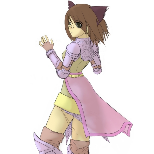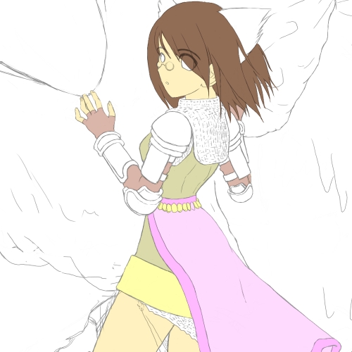あと、ピンクのマントをふんわりと薄く軽い生地に見せたかったので、スカートを透かしてみたり。う~ん、まだなんか重く見えるなぁ……?