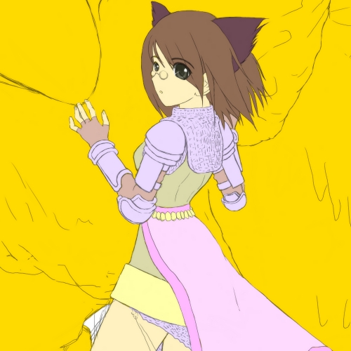 とりあえず魅伽さんとペコちゃん(不二家製)にベースの色を置き、瞳に乗算レイヤを置いて影をつけただけ。