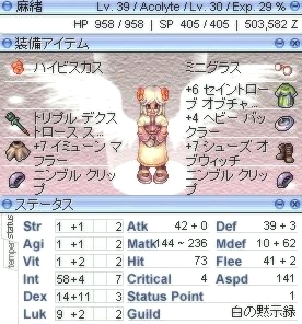 とりあえずRO日記らしく、最後は成長記録を残しておきますか。