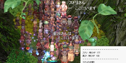 そしてセーブポイントもプロ北門のカプラWさんで、第二チェックポイントのその場所へは蝶の羽で直行したのですが、やっぱり人人人。しかもみんなテレポやらポタやらでびゅんびゅん飛びまくってる感じが壮観。
