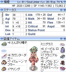 ジプシーのDEXは、まだこの後もJOBレベルによる補正が残っているので、そのうちニンクリとかも必要無くなるかもしれません。というか、そうなる前にSignを取って来るか……。(未体験