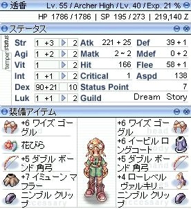 スキル使用がメインになるので、INTはもしかしたらもっと高くなるのかもしれないけどダンサーのときもこのくらいで最終的にSPは1kを超えてたから大丈夫でしょう。