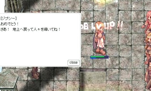 1次時代の成長速度に定評のあるアチャですが、私も魅緒をお供にジオを狩り続けているので、とりあえず転職ができるというレベルのJOB40まで上がりました。