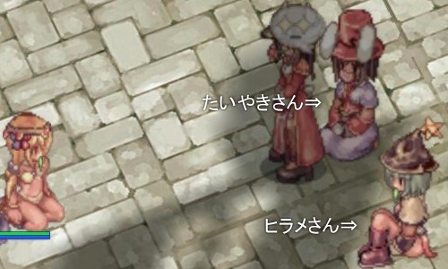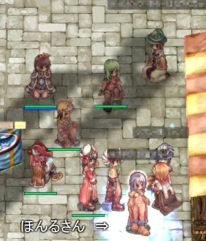 ログインしたらそこはいつもの溜まり場、花屋前。そこにはなにやら人だかりが……っと、今日は土曜だから寄付GのG狩りの日だったのです。