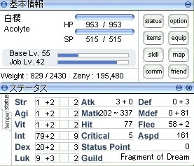 あ、今日のは支援なし&集中向上使用状態。使ってみて、肩が木琴ならFlee200超えてるとこまでAgi上がってたんだなぁと再確認。