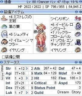 Agi77 Dex77 Int40くらい Vit65くらい。