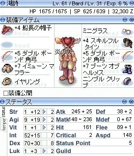 攻撃力はまあ申し分ないんですけども、防御面が今ひとつ。って言うかそのときはヒルクリとか忘れてましたし、それどころか回復剤とかも持って行くの忘れてましたし、……って言うかこれってそもそもお話にならなくない? って感じでしたから、30分ぎりぎり狩るのが精一杯。