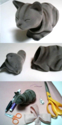これは何かというと、会津古来の民芸品の『赤べこ』と同じ仕組みで、首がゆらゆら揺れる猫の置物なのですが、右の図のように首を外して体の奥に匂玉とかを入れて芳香剤のように使えるのです。