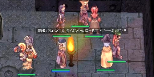 ちなみに、メンバーは前衛としてLKさん1、殲滅力としてソウルブレイカーなAX1、スナ1(私)、支援としてハイプリさん2、SP供給要員として教授さん1、と。残念ながらブラギ要員の冠さんが現われなかったため、もう一名火力としてスナさんを追加。