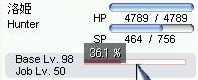 今日は、なんとなく狩りに身が入らなかったので、2%くらい上げたところで終了してみました。
